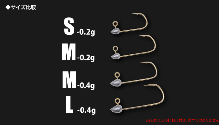 ●太軸のハイカーボン素材を使用したオリジナル形状のフックで、M・Lサイズは2.5インチ以上の大きなワームにも対応。刺さり、キープ、高い強度を実現し大型アジを仕留める!